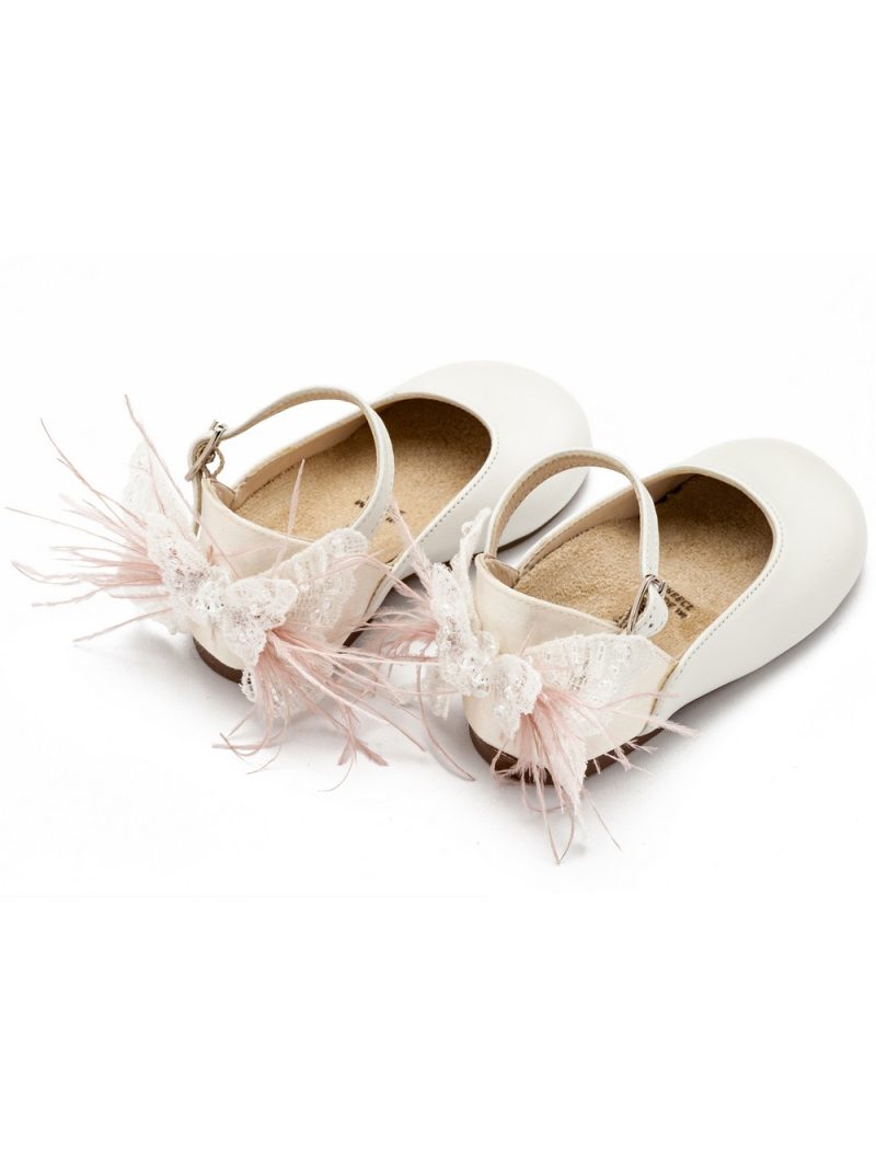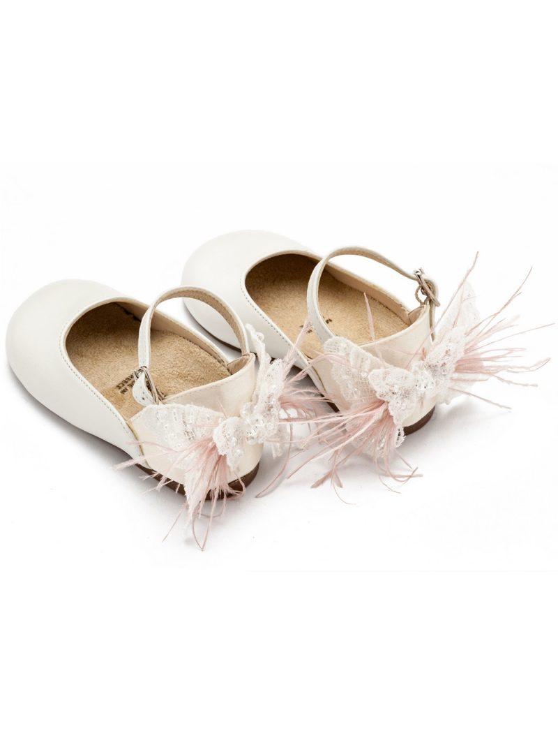 Γαλλικό Γοβάκι με Διακοσμημένη Φτέρνα Πεταλούδα BW4866 Εκρού Ροζ
