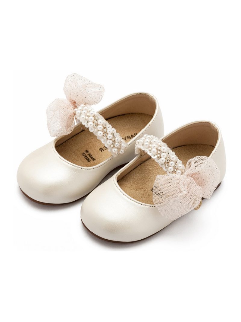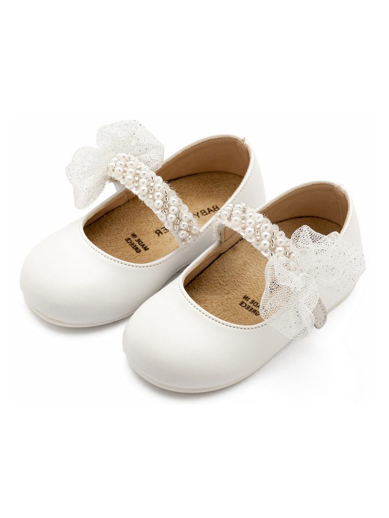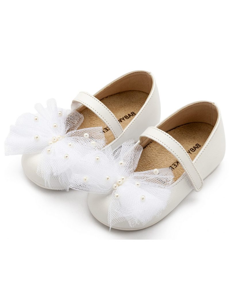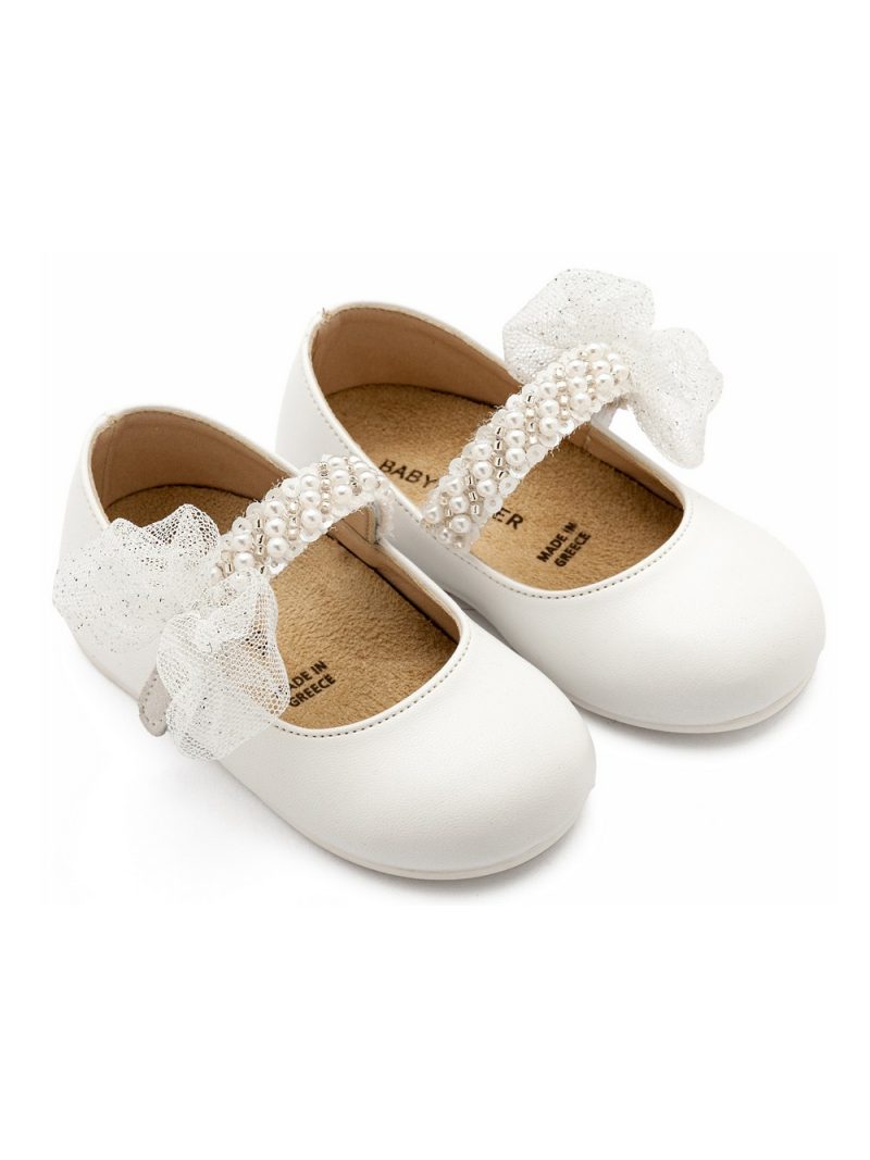 Γοβάκι με Χειροποίητο Φιόγκο και Πέρλες BS3589 Λευκό