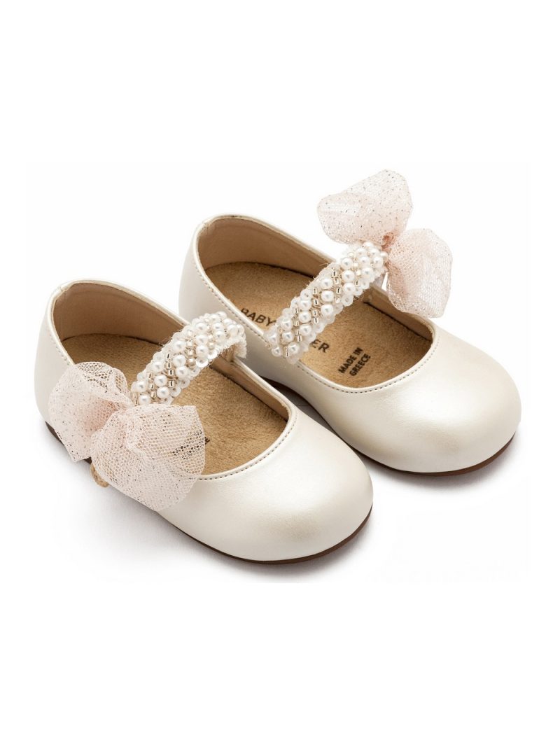 Γαλλικό Γοβάκι με Τούλινο Φιόγκο BW4853 Εκρού