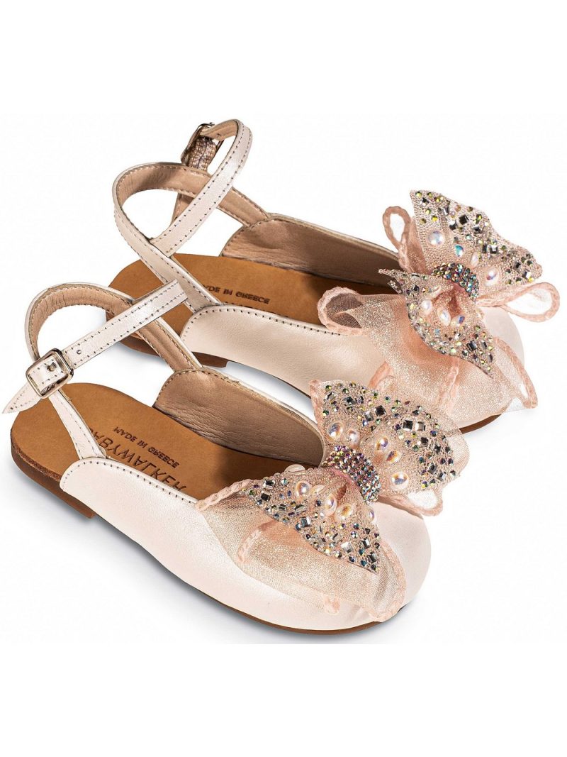 Γοβάκι με Gros Grain Φιόγκο BS3595 Εκρού Ροζ