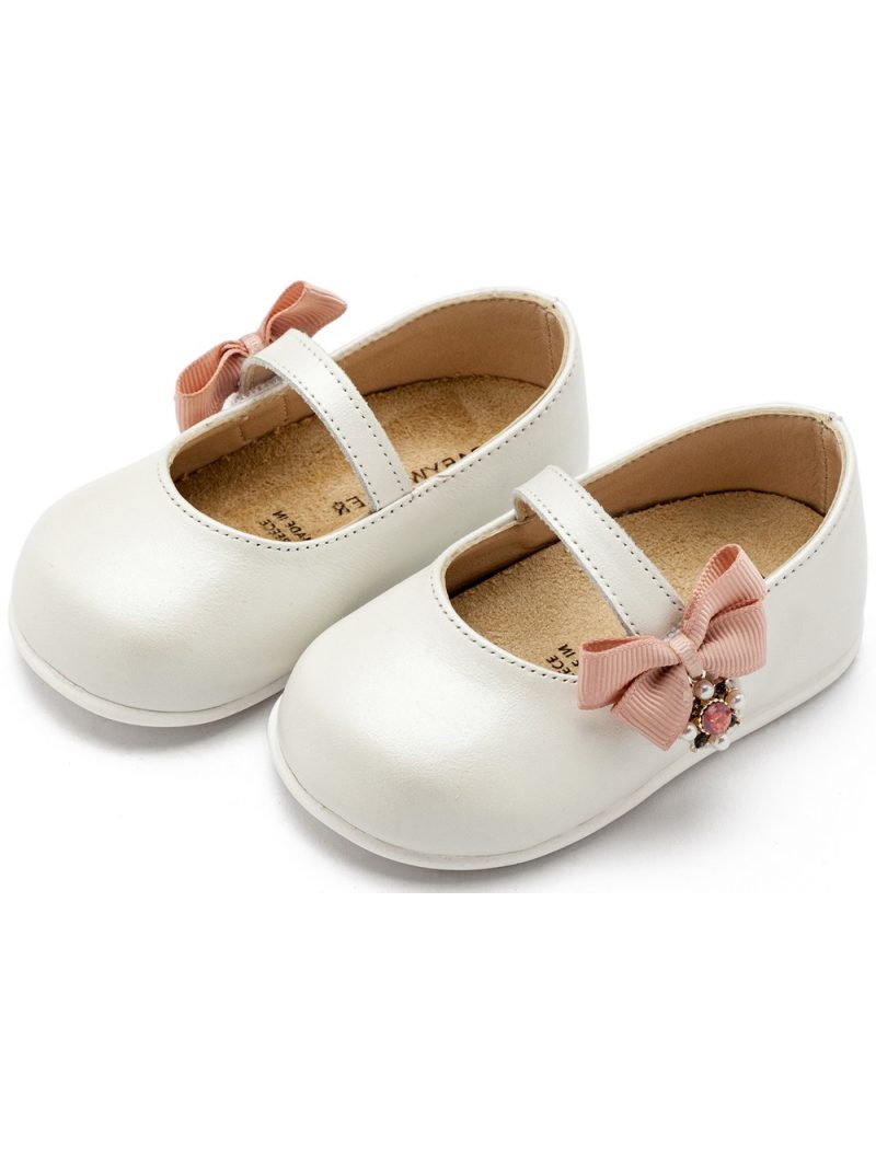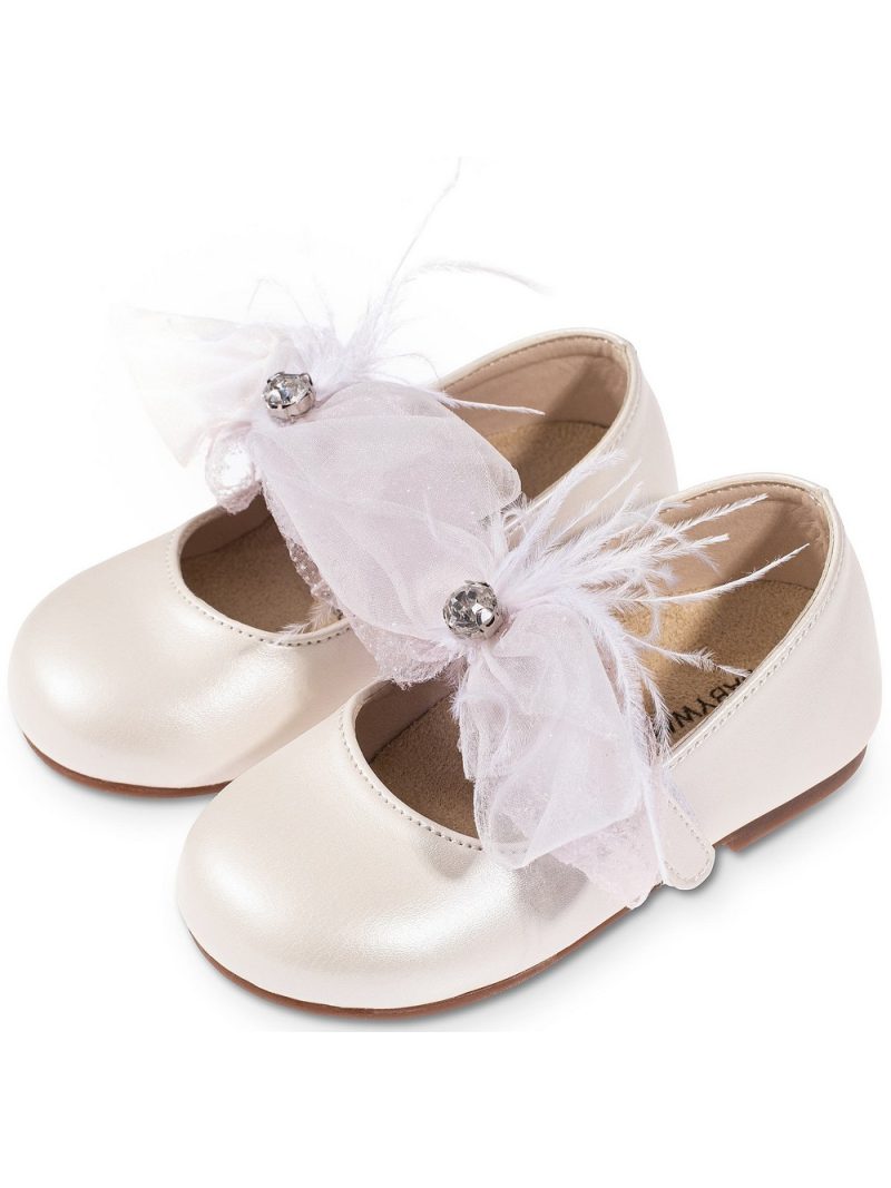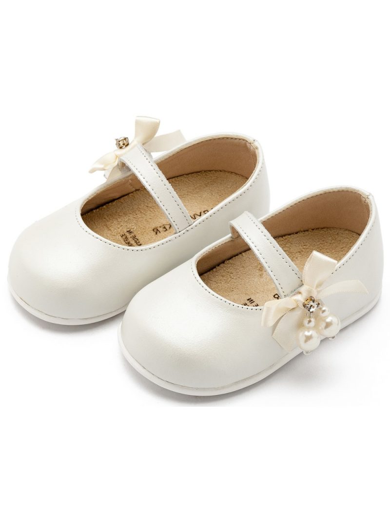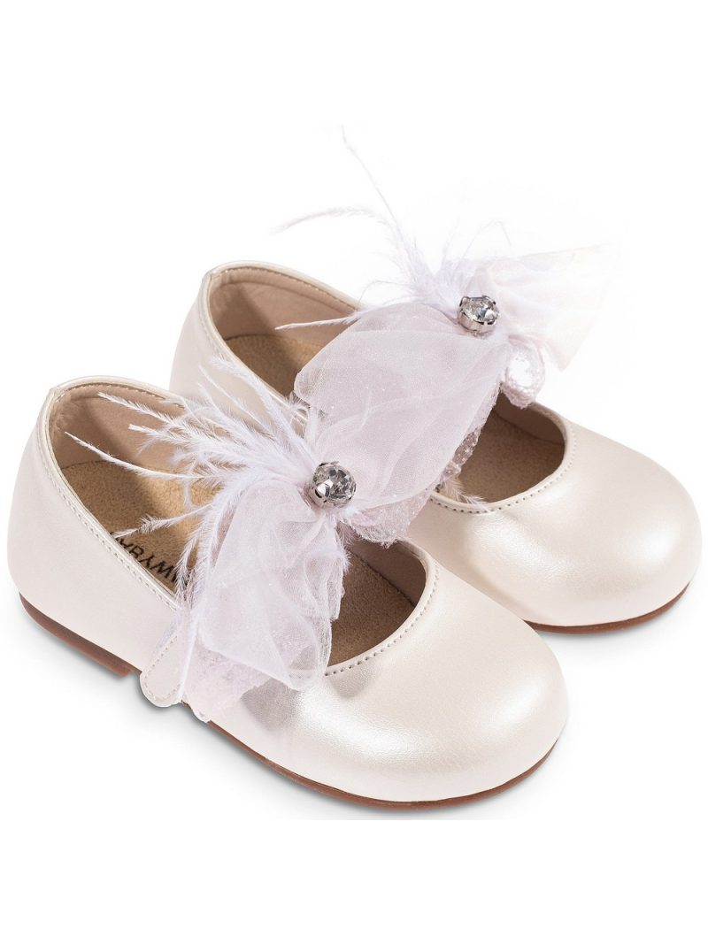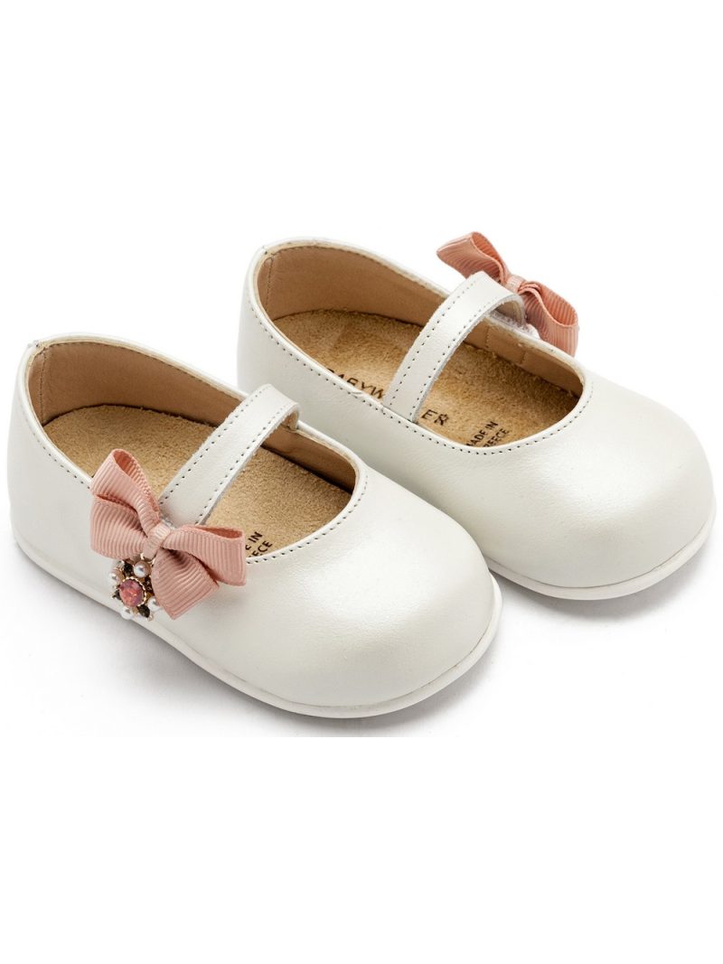Γοβάκι με Χειροποίητο Φιόγκο και Πέρλες BS3589 Εκρού