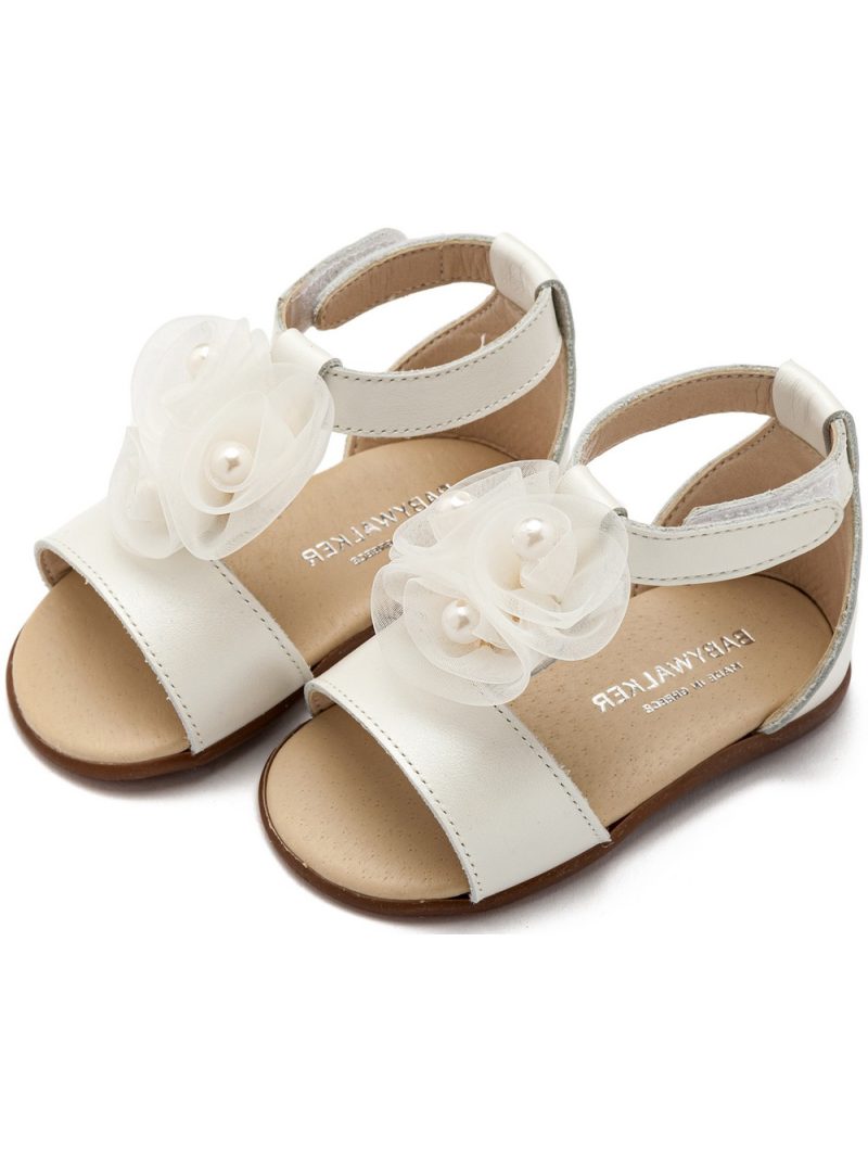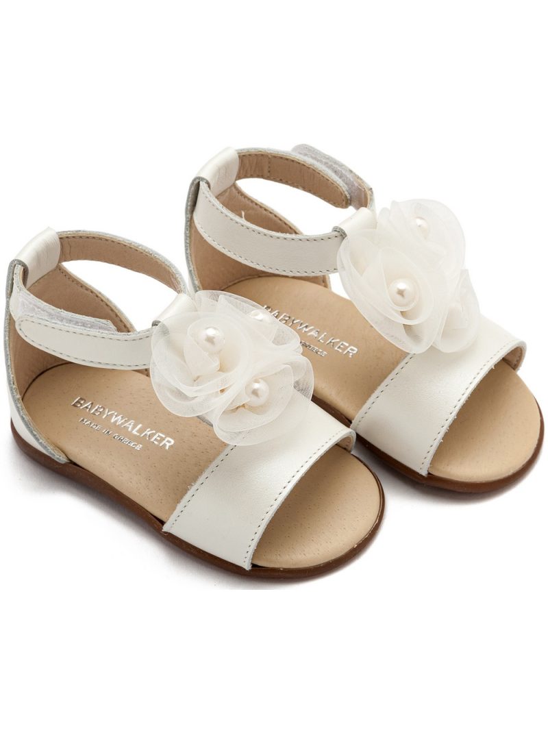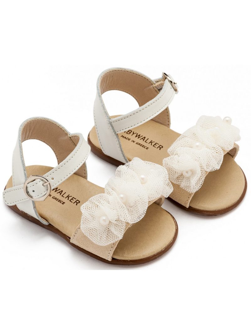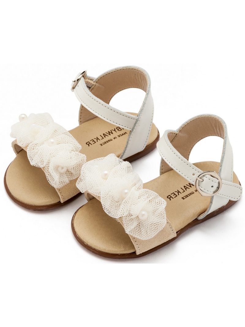 Πέδιλο με Λουλουδάκια και Πέρλες PRI2645 Εκρού