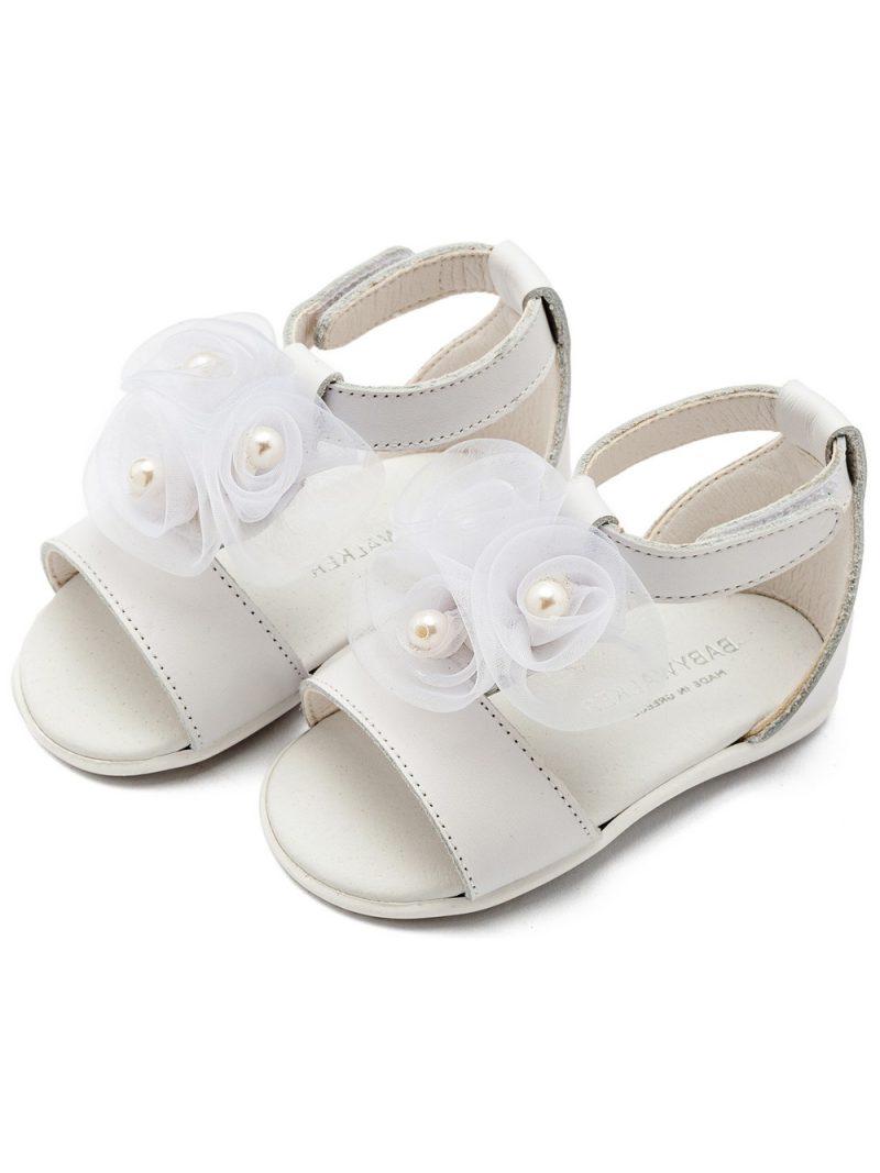 Πέδιλο Διακοσμημένο με Λουλούδια και Πέρλες PRI2641 Λευκό