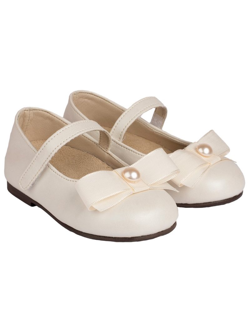 Γοβάκι Μονή Μπαρέτα Διακοσμημένο με Υφασμάτινο Χειροποίητο Φιόγκο από Συνθετικό Δέρμα σε Εκρού χρώμα
