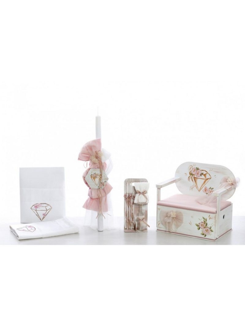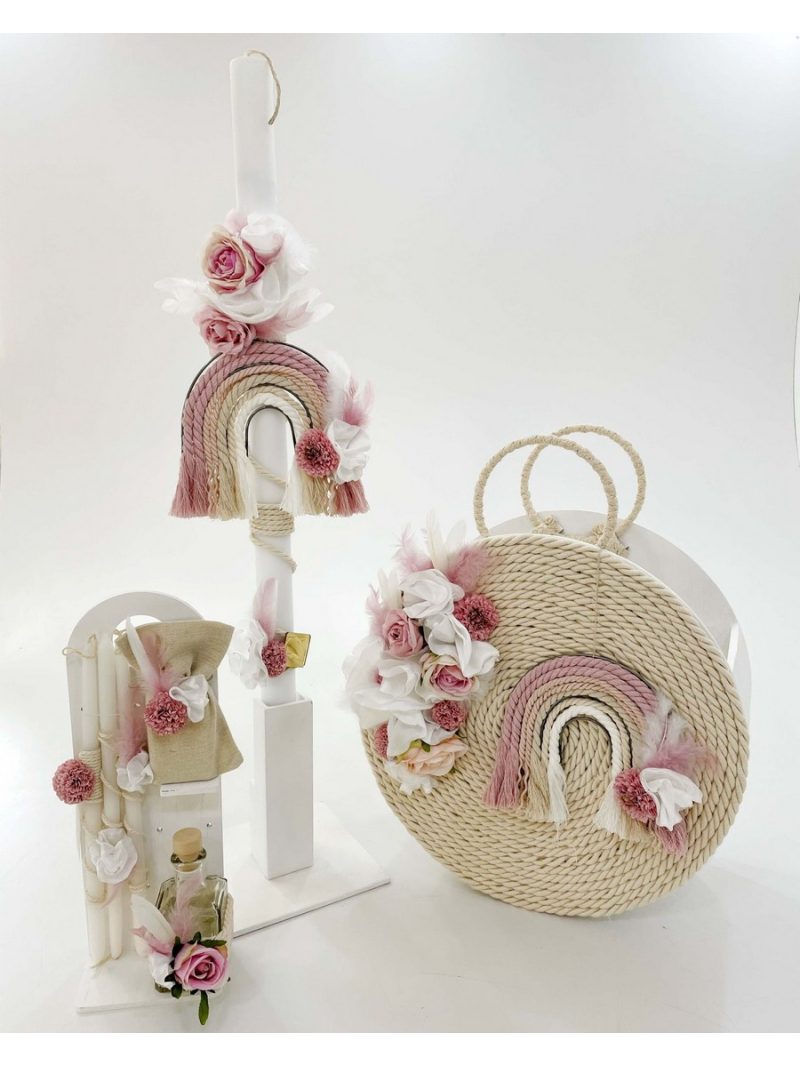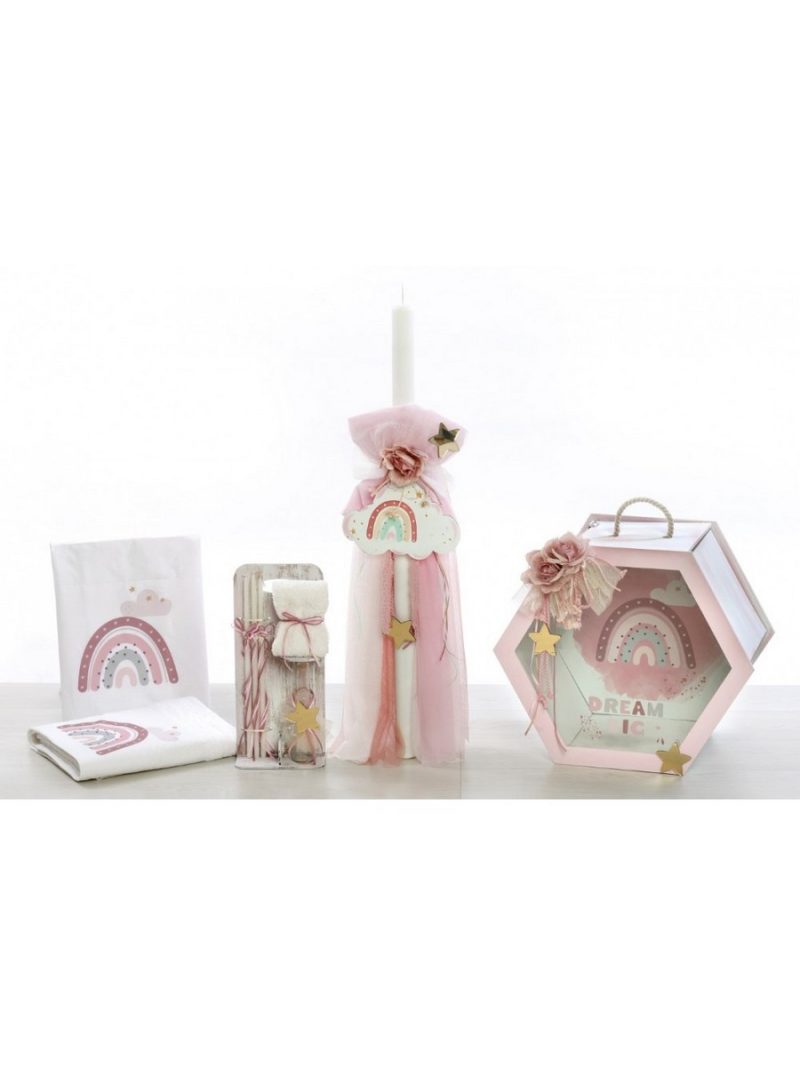 Βαπτιστικό Σετ Pink Rainbow με χρώματα σάπιο μήλο K22-031