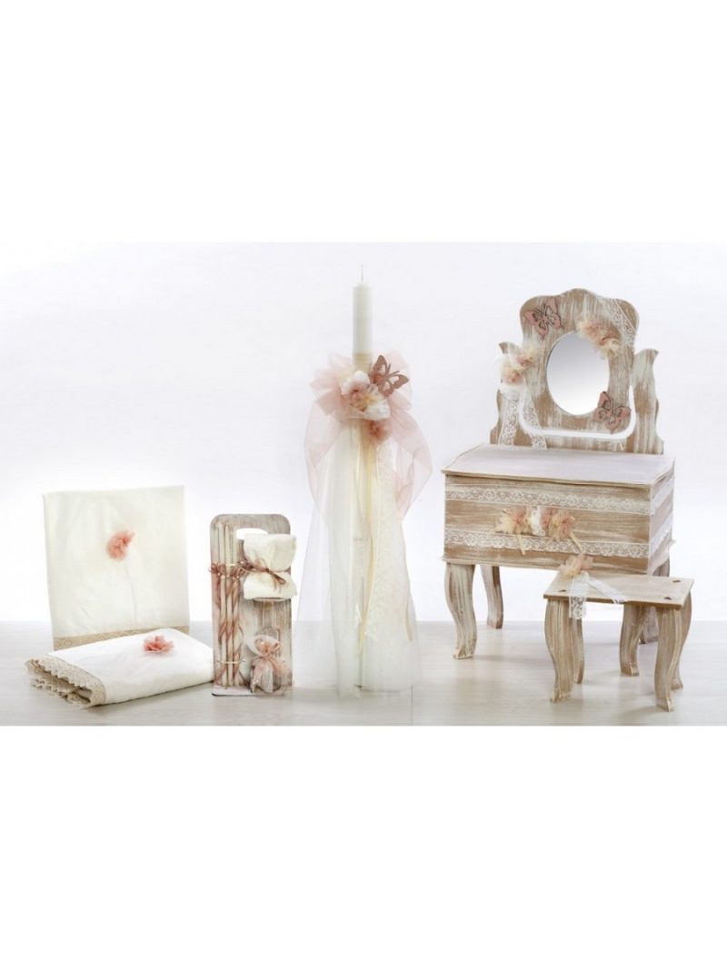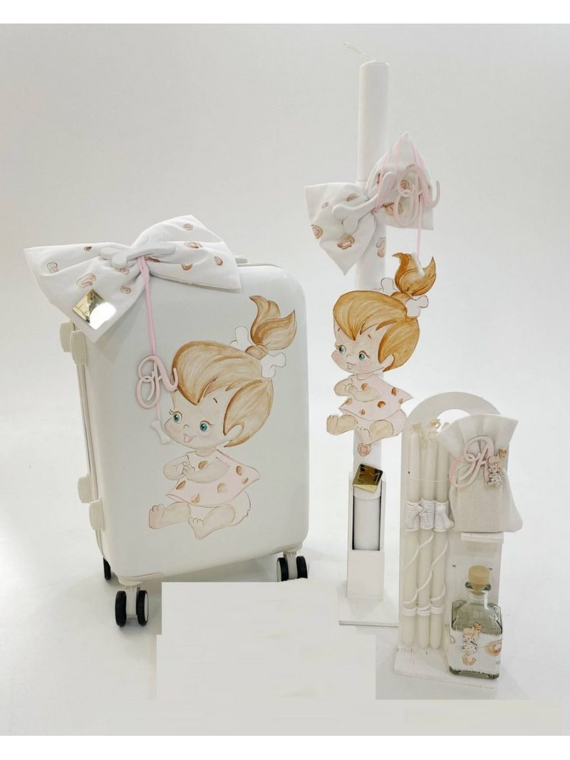 Βαπτιστικό Σετ Stone Girl με χρώματα λευκό και σάπιο μήλο K22-032