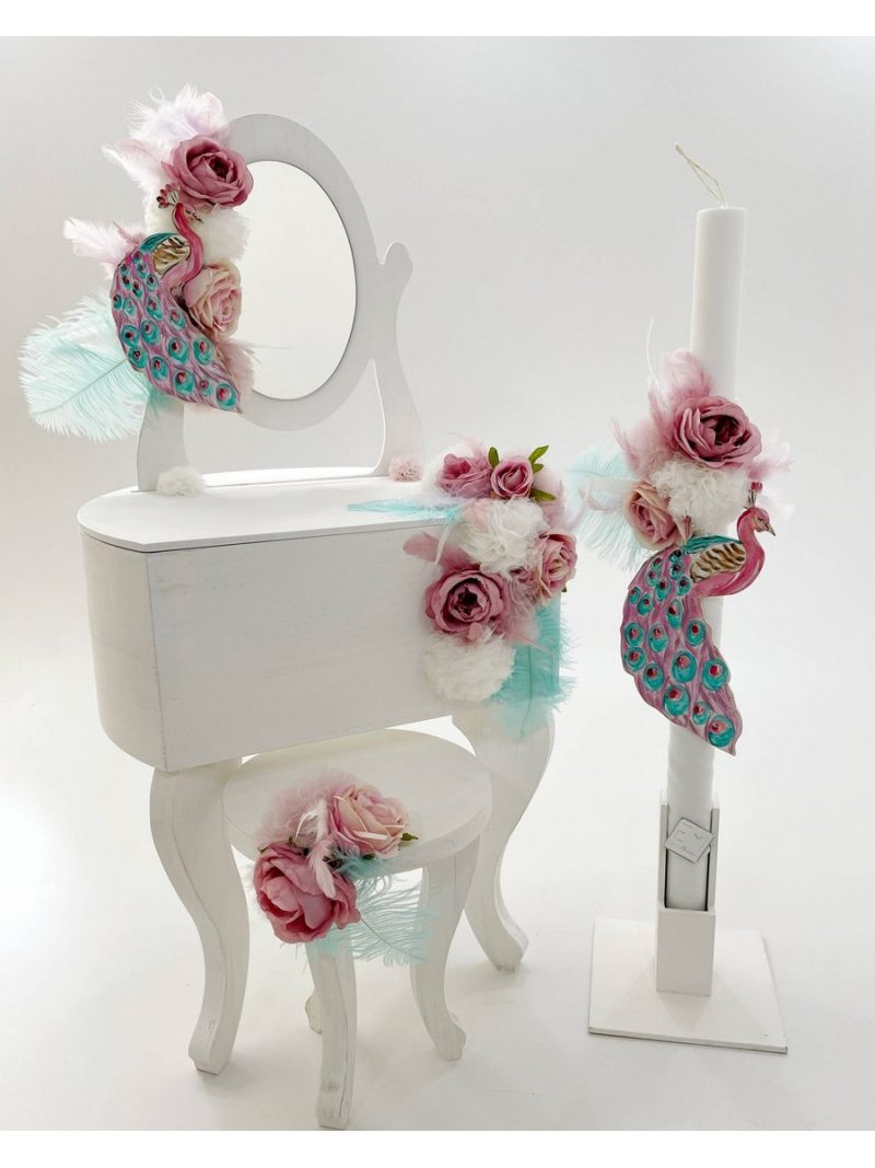 Βαπτιστικό Σετ Παγώνι με χρώματα σάπιο μήλο και μέντα K22-022