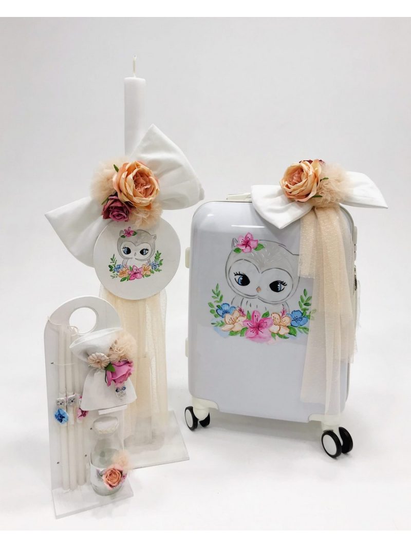 Βαπτιστικό Σετ Oh My Owl με χρώματα λευκό και σομόν K20-017