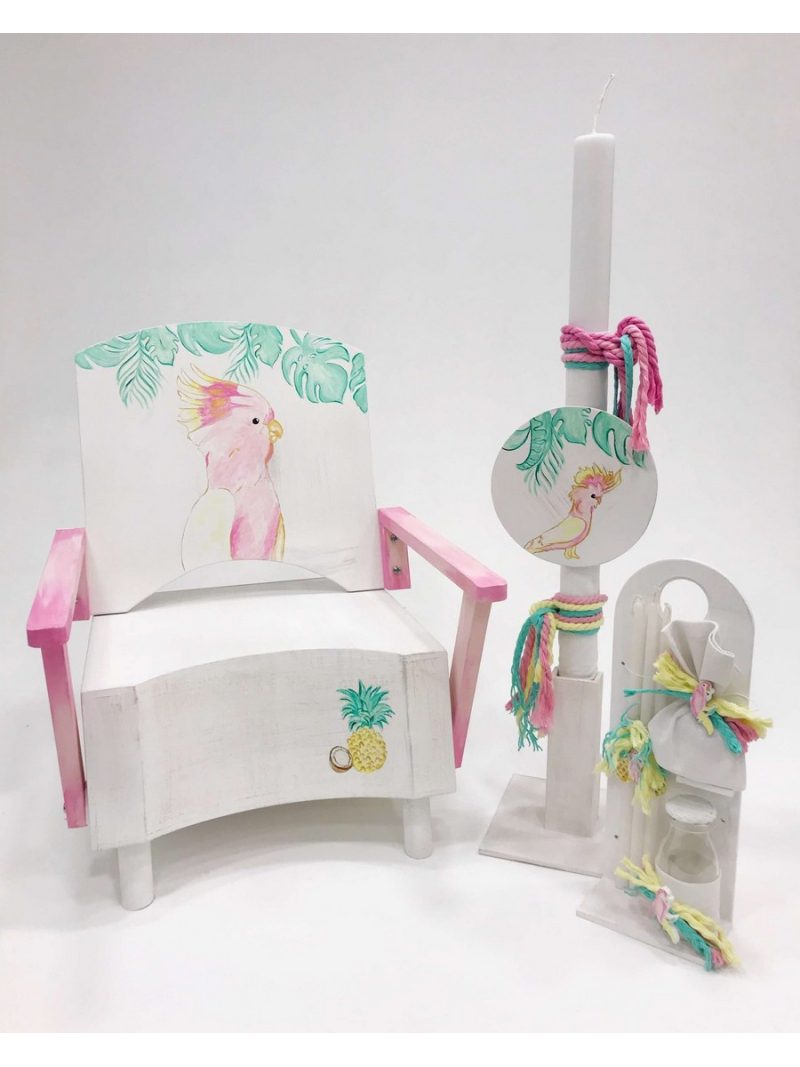 Βαπτιστικό Σετ Pink Cockatoo με χρώματα ροζ και μέντα K20-019