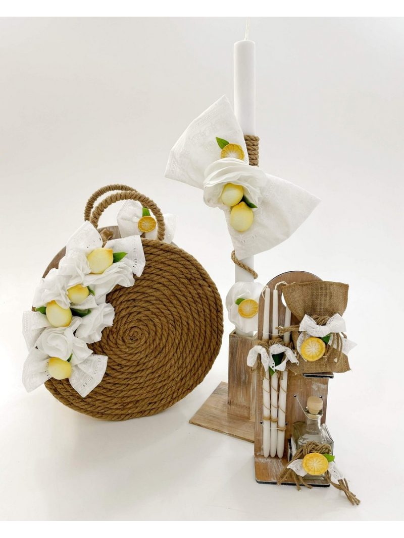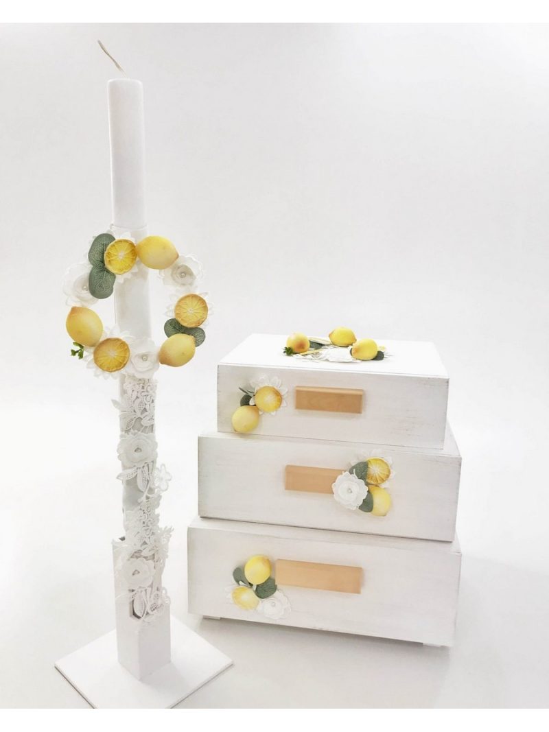Βαπτιστικό Σετ Lemons με χρώματα λευκό και κίτρινο K22-021