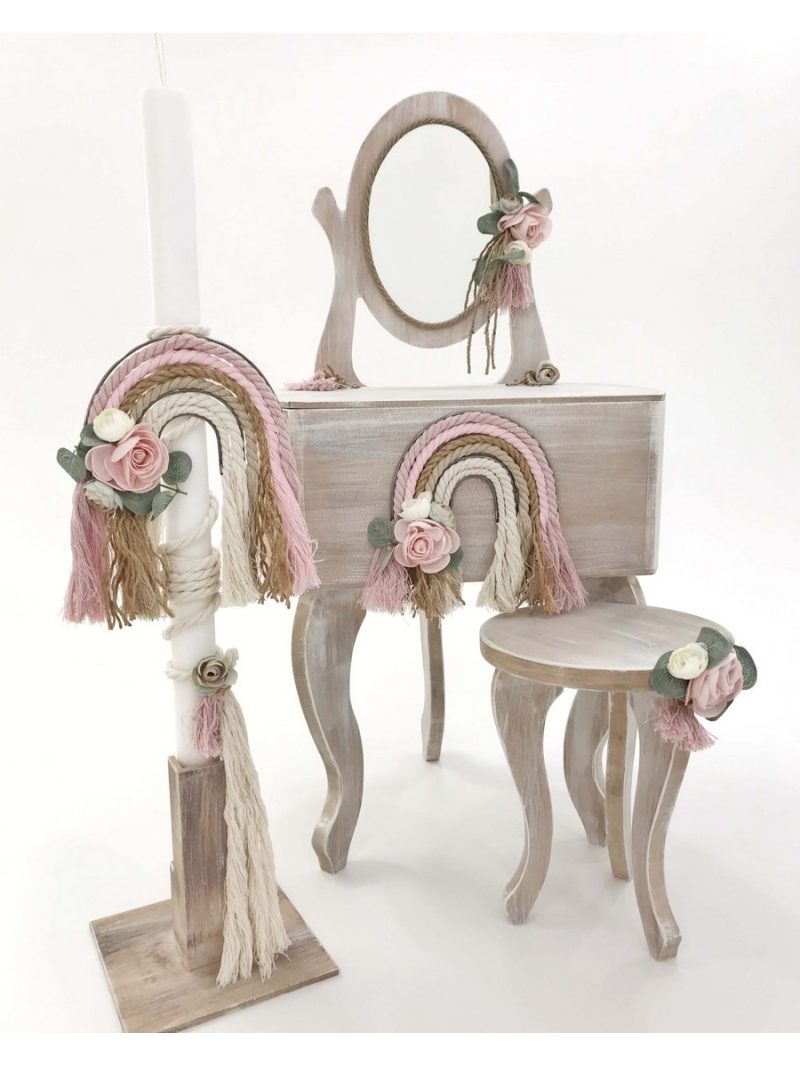 Βαπτιστικό Σετ Rainbow Love με χρώματα ροζ,φυσικό,λευκό K21-009