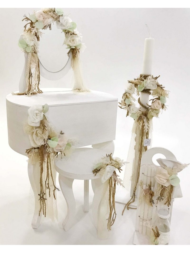 Βαπτιστικό Σετ Bohemian Pampas με χρώματα λευκό, μέντα K21-028