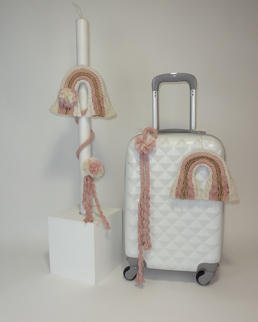Το Βαπτιστικό σετ περιλαμβάνει (Λαμπάδα, Κουτί ή Βαλίτσα, τρία κεράκια, λαδοσετ με μπουκαλάκι για το λάδι και σαπουνάκι)
