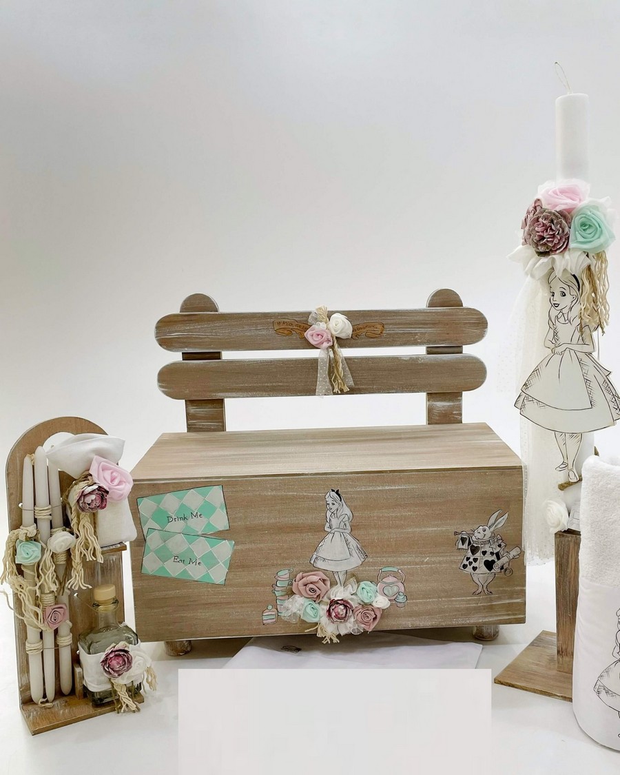 Βαπτιστικό Σετ Alice με χρώματα φυσικό βεραμάν ροζ K18-044