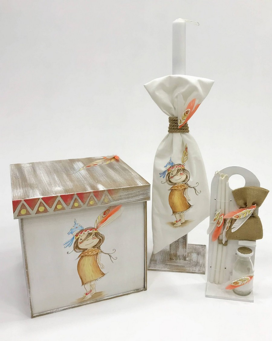 Βαπτιστικό Σετ Indian Girl με χρώματα καφέ κ λευκό K18-024