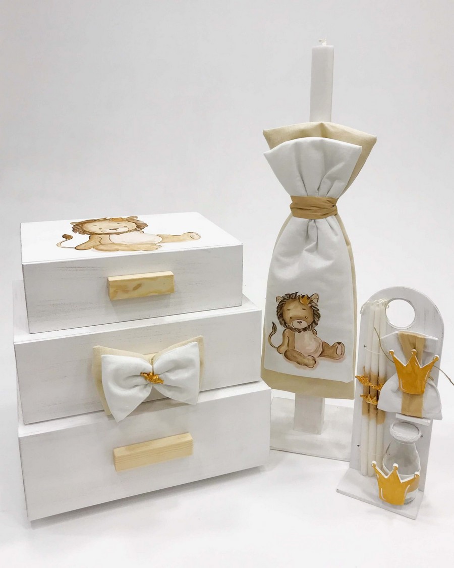 Βαπτιστικό Σετ King Lion με χρώματα μπεζ λευκό.