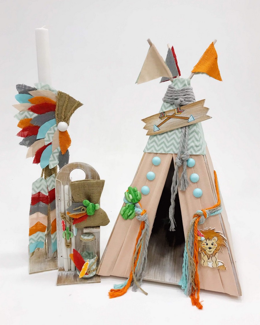 Βαπτιστικό Σετ Lion Teepee με χρώματα πορτοκαλί.
