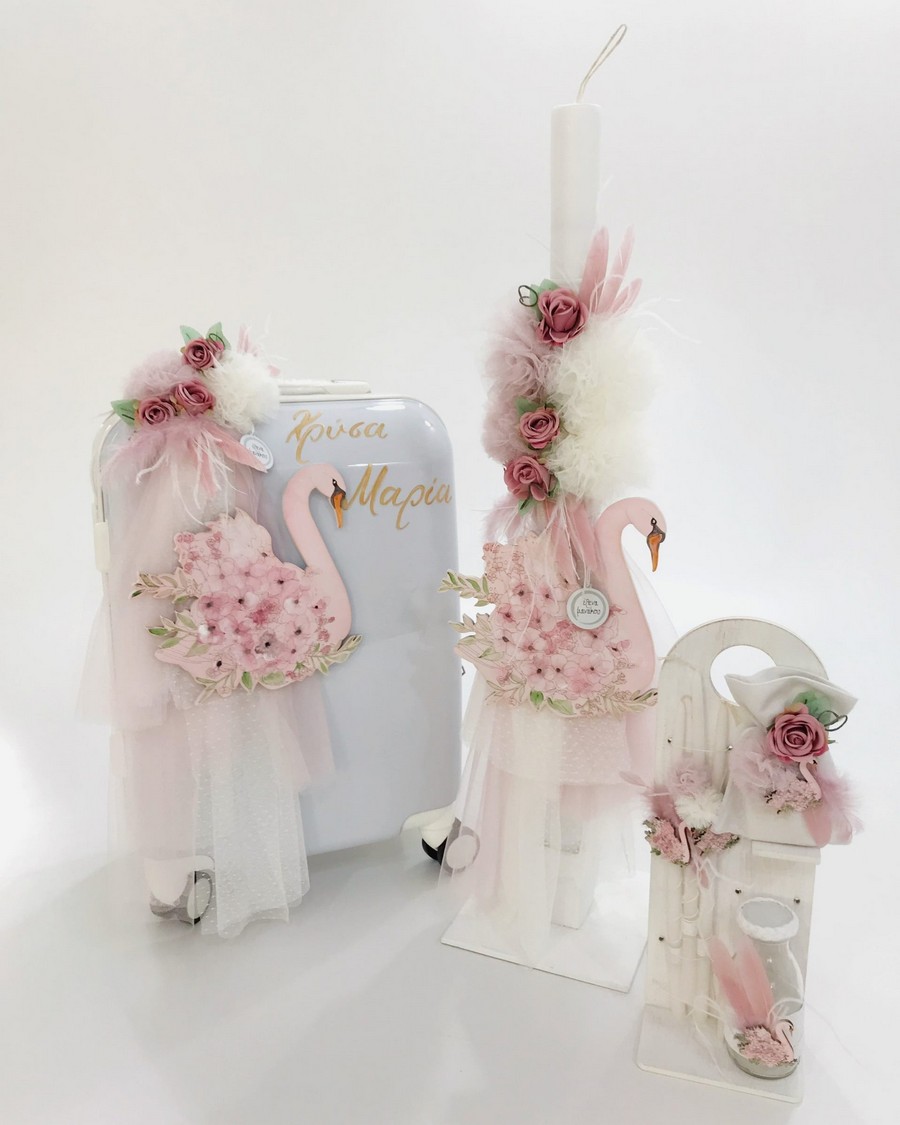 Βαπτιστικό Σετ Ψιψίνα με χρώματα λευκό ροζ K22-049