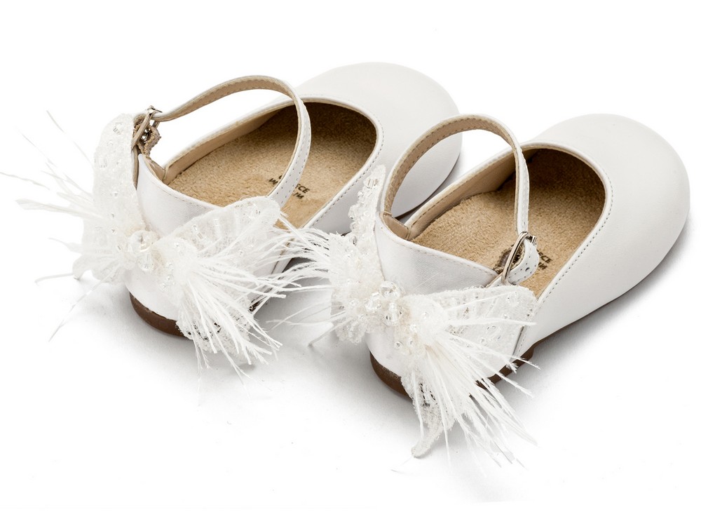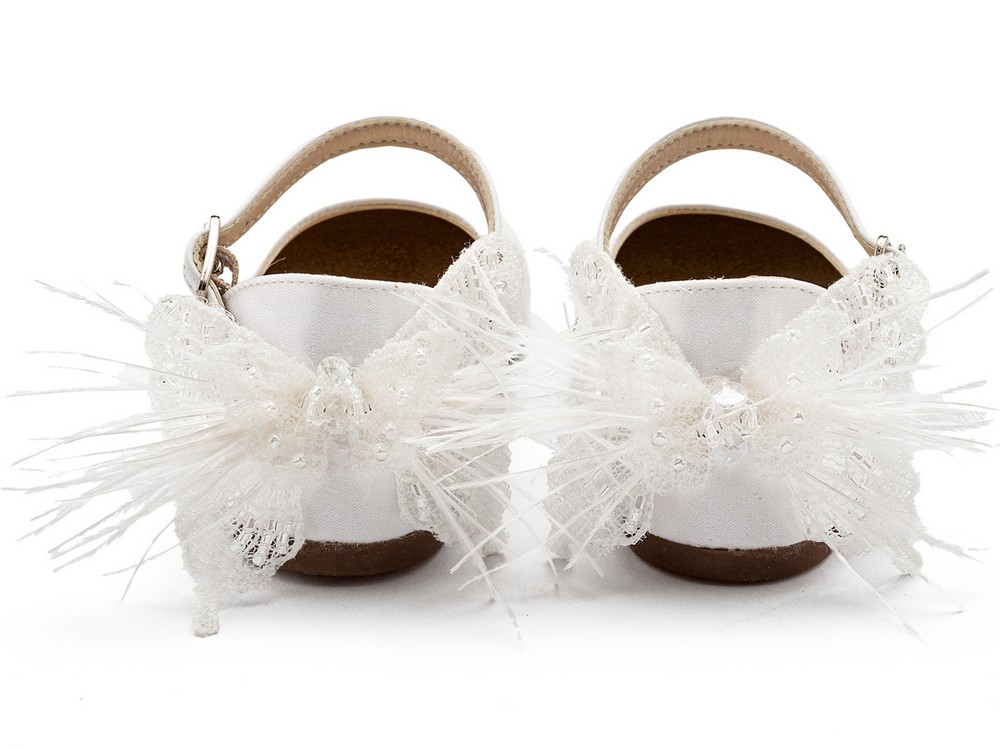 Γαλλικό Γοβάκι με Διακοσμημένη Φτέρνα με Υφασμάτινη Πεταλούδα σε Λευκό Χρώμα