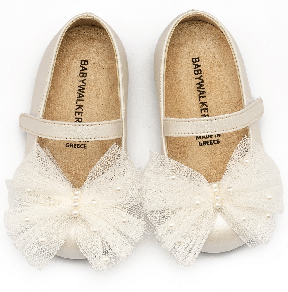 Γοβάκι με Τούλινο Χειροποίητο Φιόγκο και Πέρλες σε Εκρού Χρώμα