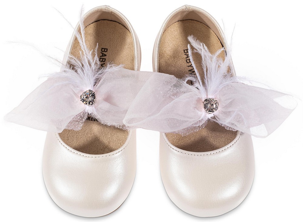 Γοβάκι με Χειροποίητο Φιόγκο και Πέρλες BS3589 Εκρού