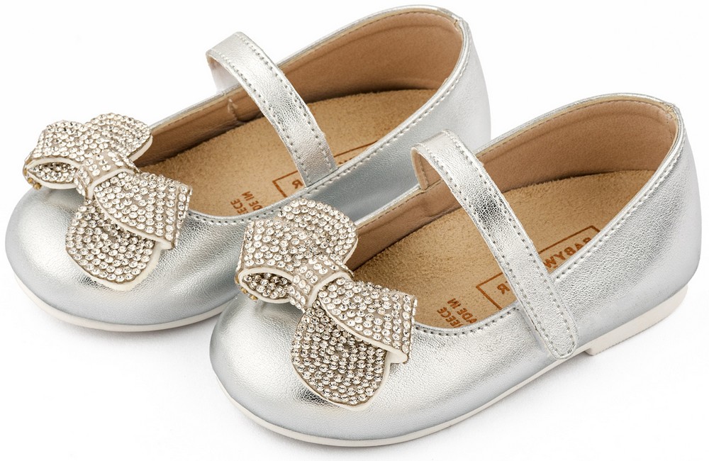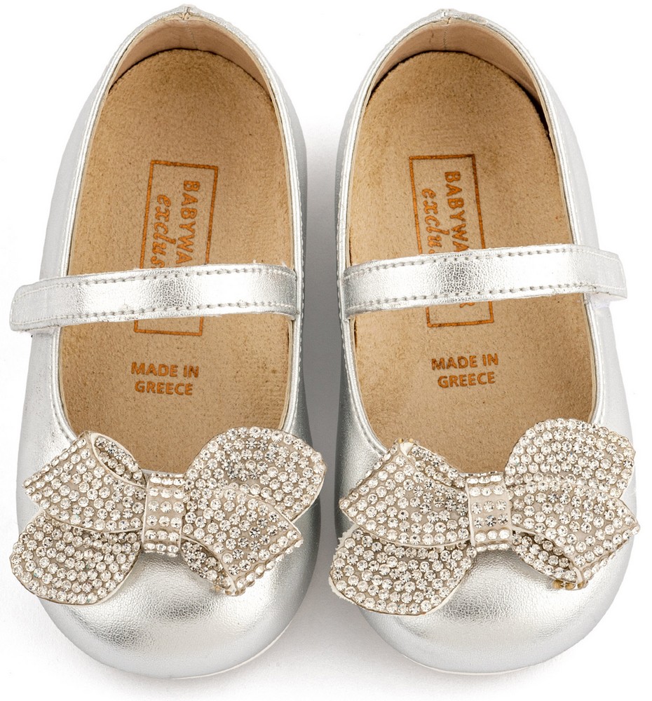 Γοβακι Μονή Μπαρέτα Στρας με Φιογκάκι Στρας σε Ασημί Χρώμα