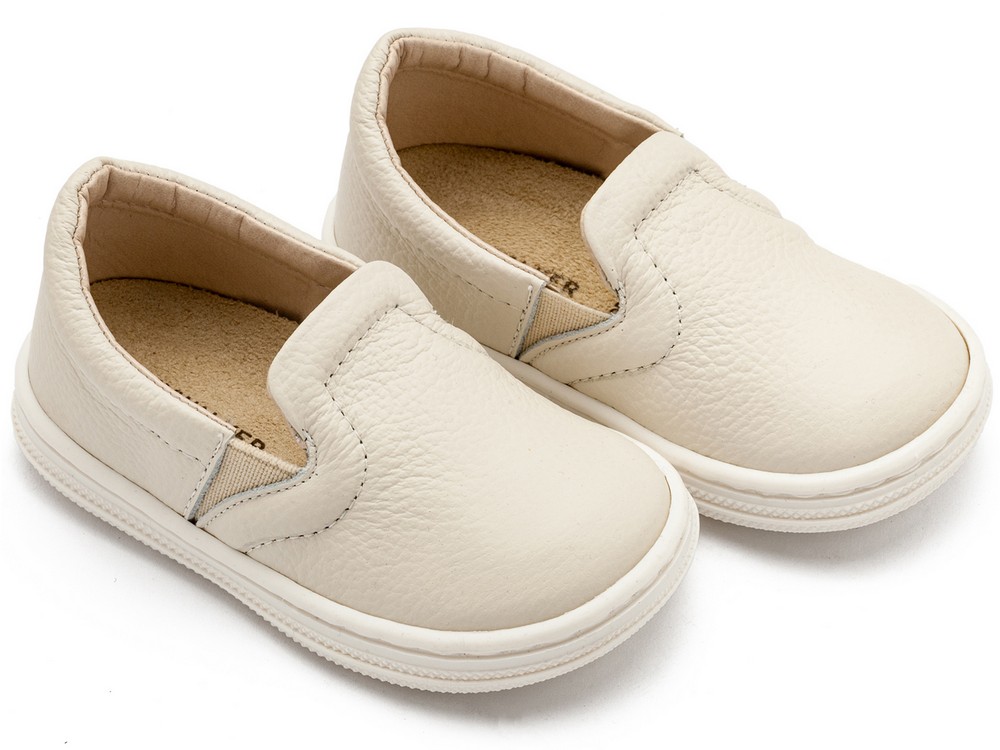 Δερμάτινο Σταμπωτό Loafer με Λάστιχο στο πλάι σε Εκρού Χρώμα