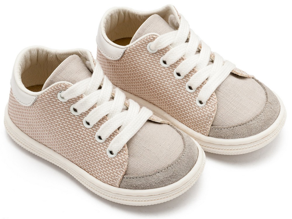 Δετά Δίχρωμα Σνίκερς από Ύφασμα και Συνθετικό Δέρμα σε Μπεζ Γκρι Χρώμα