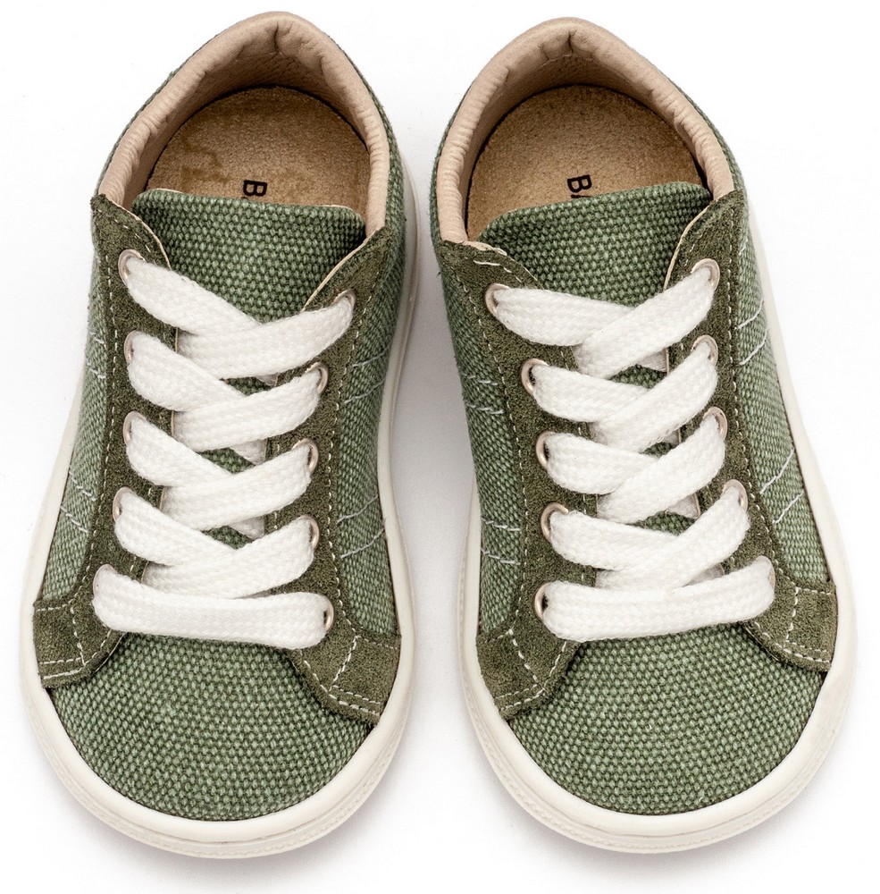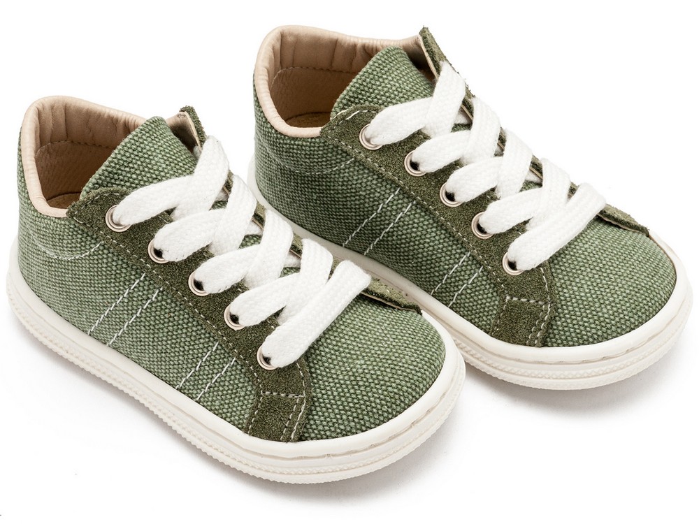 Δίχρωμα Υφασμάτινα Δετά Σνίκερ από Ύφασμα και Δέρμα σε Χακί Χρώμα