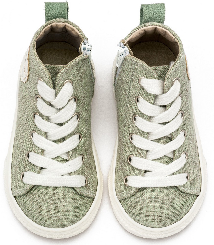 Υφασμάτινο Δετό Μποτάκι Sneaker με Φερμουάρ στο Πλάι σε Φυστικί Χρώμα