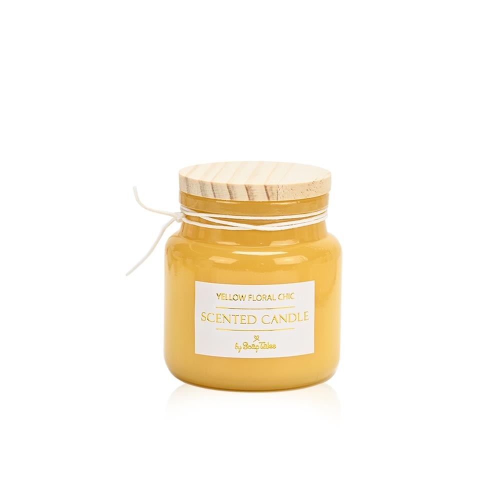 Κερί κίτρινο floral chic με ξύλινο καπάκι ST00889