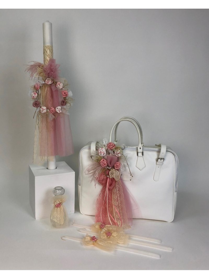 Βαπτιστικό Σετ Ψιψίνα με χρώματα λευκό ροζ K22-049