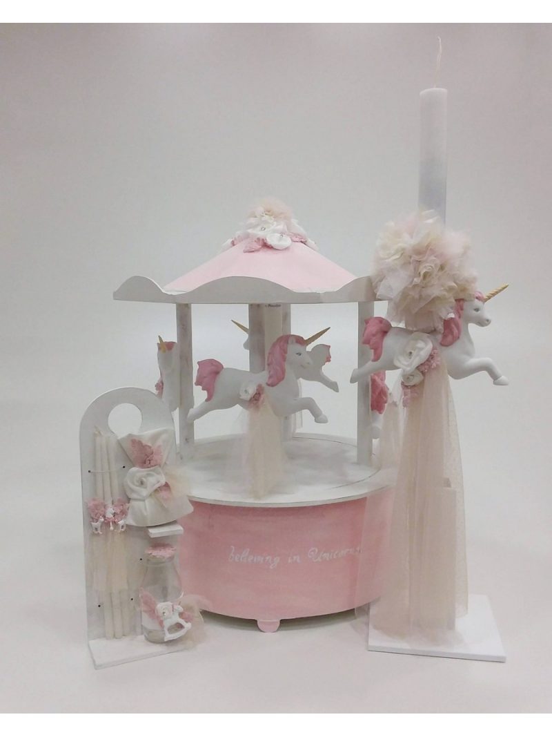 Βαπτιστικό Σετ Carousel Unicorn με χρώματα ροζ και λευκό K17-001