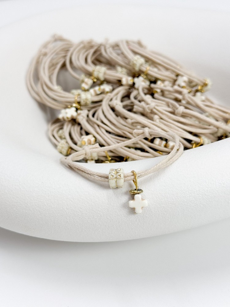 Μαρτυρικό βραχιόλι με χαολίτη σταυρό, ροδέλα και κερωμένο κορδόνι D40 (50τμχ)