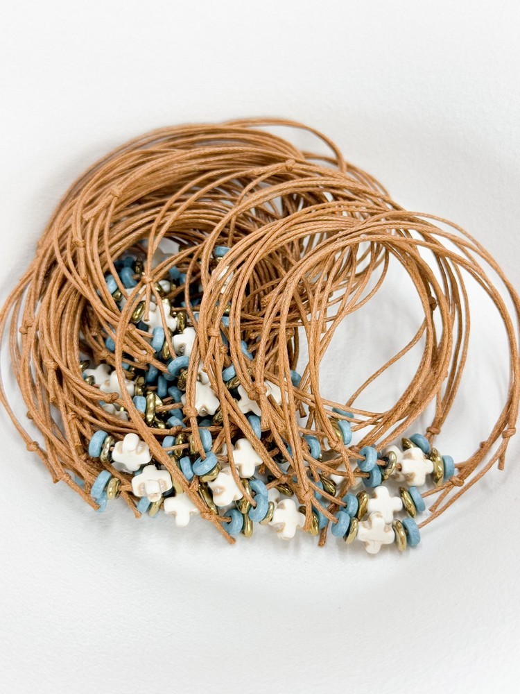 Μαρτυρικό βραχιόλι με χαολίτη σταυρό, ροδέλα και χάντρα αιματίτης A30 (50τμχ)