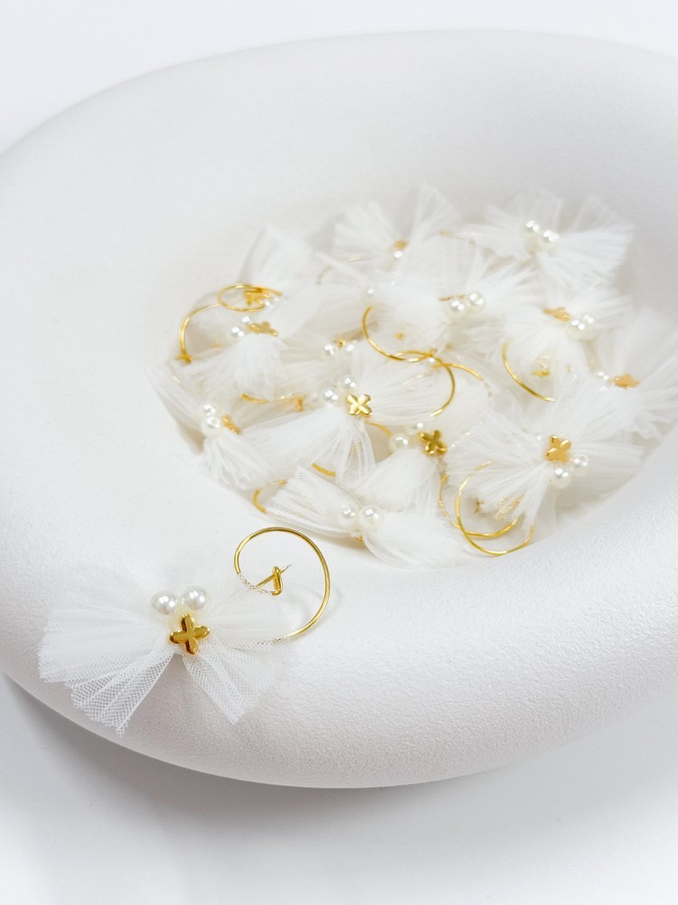 Μαρτυρικό καρφίτσα με επιχρυσωμένο σταυρό, τούλι λευκό και πέρλα M76 (50τμχ)