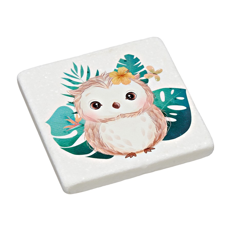 Μπομπονιέρα Βάπτισης Σουβέρ Μάρμαρο με εκτύπωση 9x9x1cm Κουκουβάγια