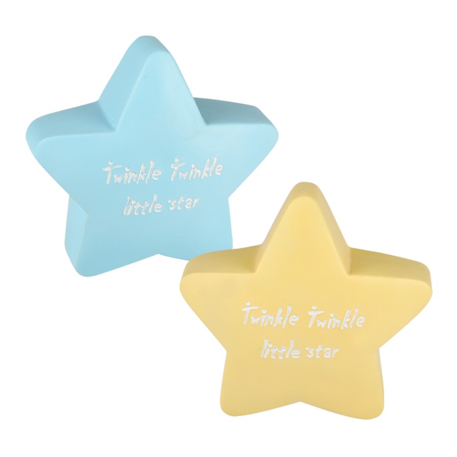 Μπομπονιέρα Βάπτισης Aστέρι Σίελ & Κίτρινο με Ευχή Κουμπαράς