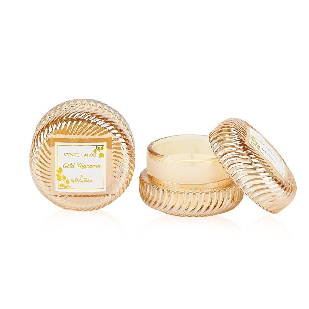 Aρωματικό κερί μακαρόν μπεζ με άρωμα golden grace 50gr. Διαστάσεις 7 εκ. διάμετρος x 5 εκ. ύψος.