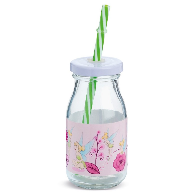 Disney γυάλινο μπουκάλι γάλακτος 200ml με λευκό μεταλλικό καπάκι.