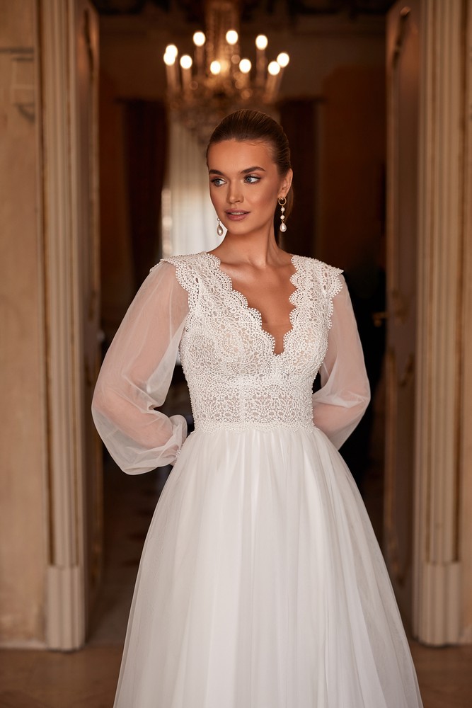 Τα κλασικά νυφικά μας είναι ειδικά κατασκευασμένα για να αναδεικνύουν τον ρομαντισμό, την κομψότητα και τη λεπτότητα. Φτιαγμένο από λείο ύφασμα με ελάχιστες λεπτομέρειες, το ολο-ιβουάρ φόρεμα Clara είναι προσαρμοσμένο για τη μινιμαλιστική, ειλικρινή και εκλεπτυσμένη μέλλουσα νύφη! Με έμφαση στο χειροποίητο σχέδιο, προσθέσαμε μια τετράγωνη λαιμόκοψη και αέρινα, πολλαπλά διπλωμένα χειροποίητα μακριά μανίκια από τούλι, διακοσμημένα με μια όμορφη επένδυση από λεπτές λεπτομέρειες από μαργαριτάρι. Αυτό το απλοϊκό φόρεμα σε στυλ γοργόνας αντανακλά αυτοπεποίθηση, τάξη και ευγένεια. Στη DAMA Couture, είμαστε αφοσιωμένοι στη δημιουργία νυφικών που εκφράζουν το αίσθημα αγάπης, αγάπης και επιθυμίας.