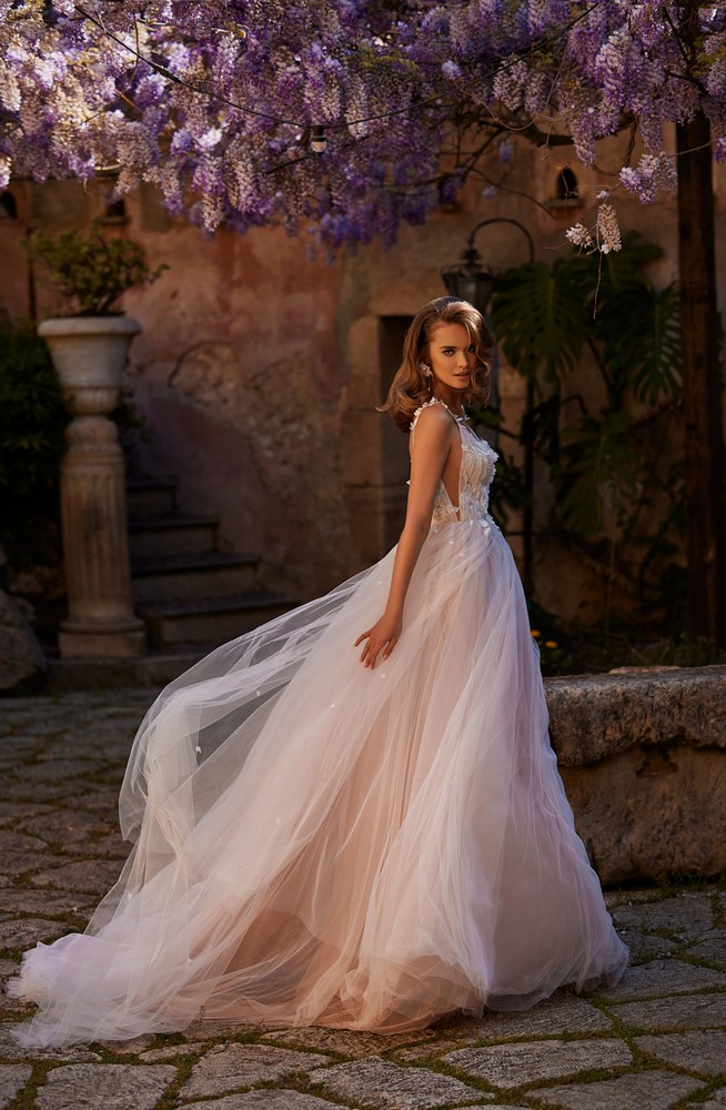 Προσαρμοσμένο για το ρομαντικό μέσα σας, το φόρεμά μας Sava είναι για τη φλερτ και τολμηρή μέλλουσα νύφη. Με την τέχνη και την προσοχή στο προσκήνιο, οι τεχνίτες μας έχουν ραμμένες στο χέρι δαντέλες λουλουδιών με στρώσεις 3D διακοσμήσεις. Αυτό το εκλεπτυσμένο στυλ αναδεικνύει την αισθησιακή και ζωηρή γυναίκα από μια βαθιά λαιμόκοψη και πλαϊνά κοψίματα — σε μια γυμνή δικτυωτή υπογράμμιση — μέχρι μια ανοιχτή πλάτη. Σχεδιασμένο με πολύχρωμη —ροζ, μπεζ και ιβουάρ— κλασική φούστα σε γραμμή Α και τρένο καταρράκτη, αυτό το φόρεμα αποπνέει κομψότητα. Τα ρομαντικά νυφικά μας δημιουργούνται σκόπιμα στο DAMA Couture για να αναδείξουν την αιθέρια ομορφιά και έκφραση.