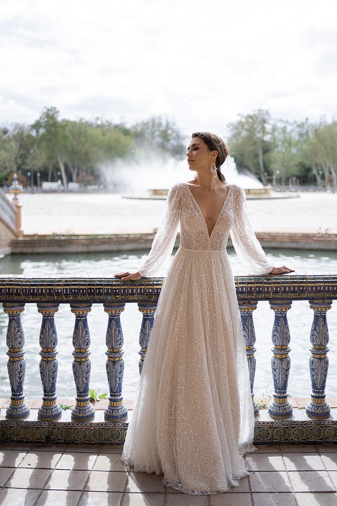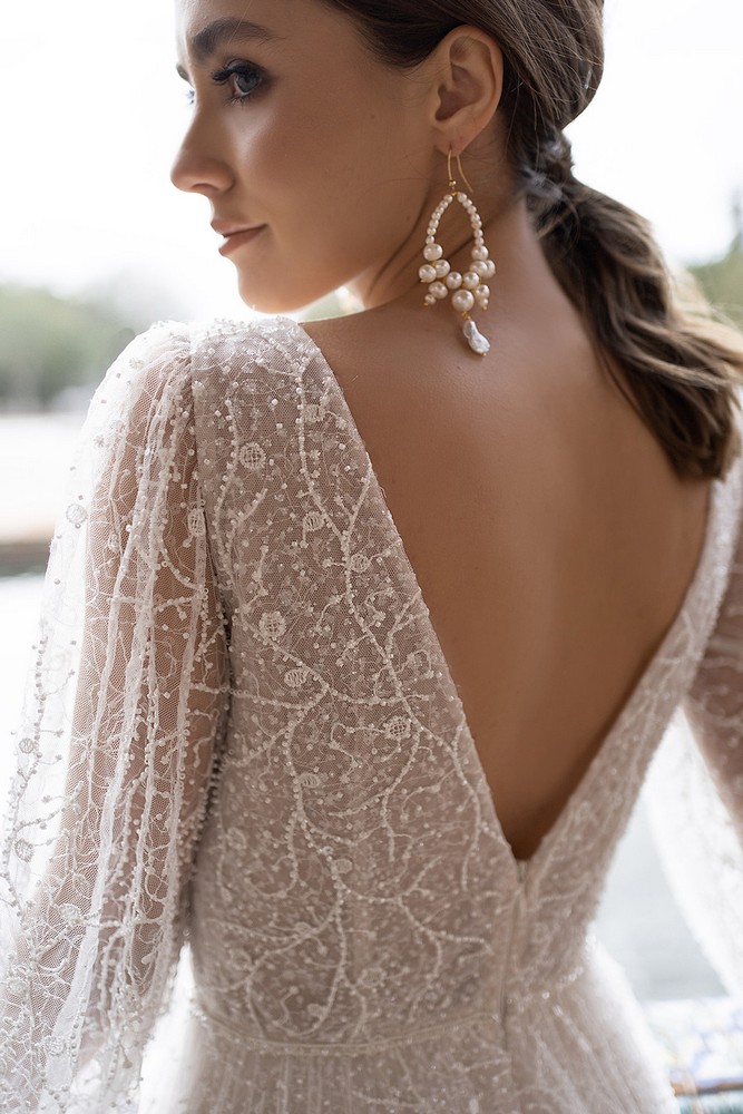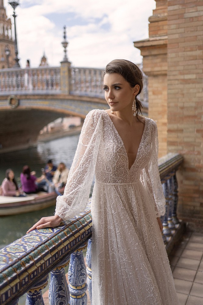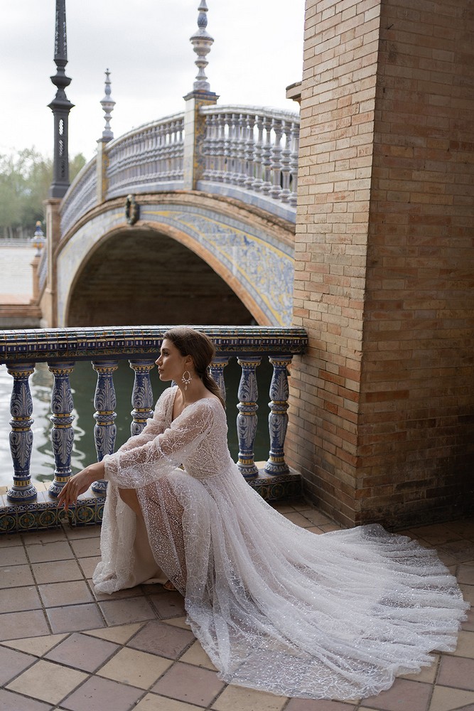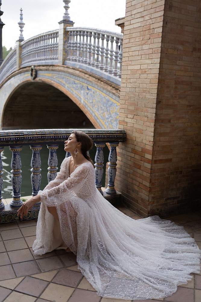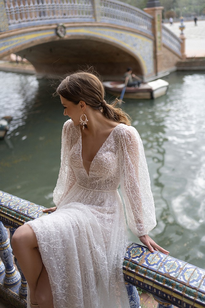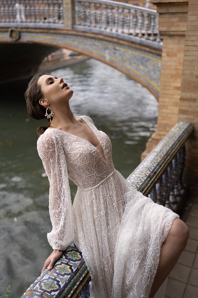 Με την αυθεντικότητα και την έκφραση στον πυρήνα αυτού που είμαστε, οι τεχνίτες μας έχουν σχεδιάσει το φόρεμα Suri για τη γυναίκα με αυτοπεποίθηση και έκφραση. Συνδυάζοντας vintage και μοντέρνο σχεδιασμό, συνδυάσαμε έναν κορσέ και υψώσαμε floral λεπτομέρειες με γκλίτερ τούλι και γυμνές υπογραμμίσεις. Ειδικά κατασκευασμένο με δαντέλα και λεπτό ύφασμα marchiano, το Suri Dress αντανακλά τη θηλυκότητα και την κομψότητα. Σχεδιασμένο με ψηλόμεση κεντημένη ζώνη και φούστα σε γραμμή Α με διάφανα φουσκωτά μανίκια και βαθιά λαιμόκοψη, αυτό το φλερτ στυλ αναδεικνύει τη φινέτσα και την καλλιτεχνία. Στη Dama Couture, είμαστε αφοσιωμένοι στο να δημιουργούμε ιδιαίτερες στιγμές για τη μέλλουσα νύφη μέσω προσεγμένου, χειροποίητου σχεδιασμού.