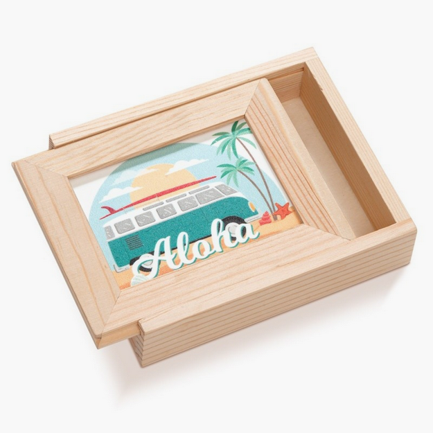 Ξύλινη κασετίνα με κορνίζα,Η κορνίζα είναι διακοσμημένη με παραλληλόγραμμο print plexiglass καδράκι.