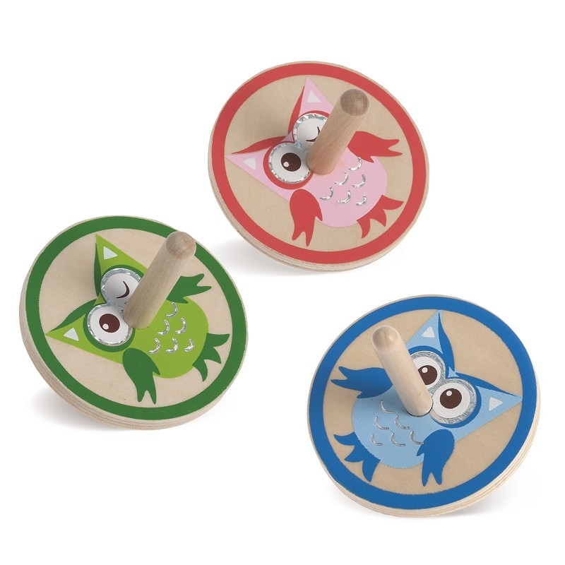 Ξύλινη παιδική σβούρα με κουκουβάγιες. Ο κωδικός περιλαμβάνει 3 χρώματα.