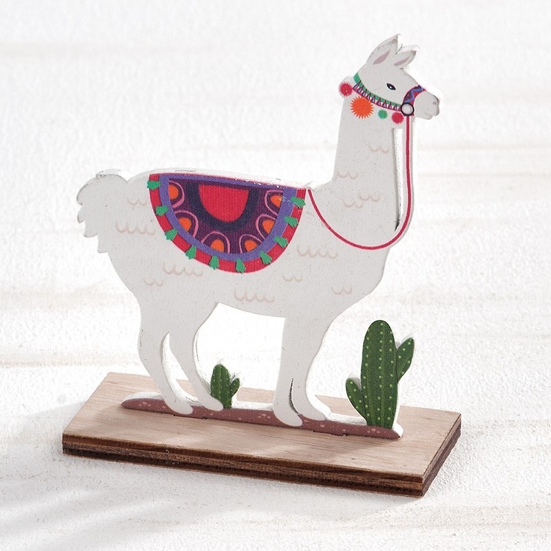Ξύλινο διακοσμητικό πολύχρωμο λάμα σε βάση. Τη βάση του διακοσμεί επίσης ξύλινο κακτάκι