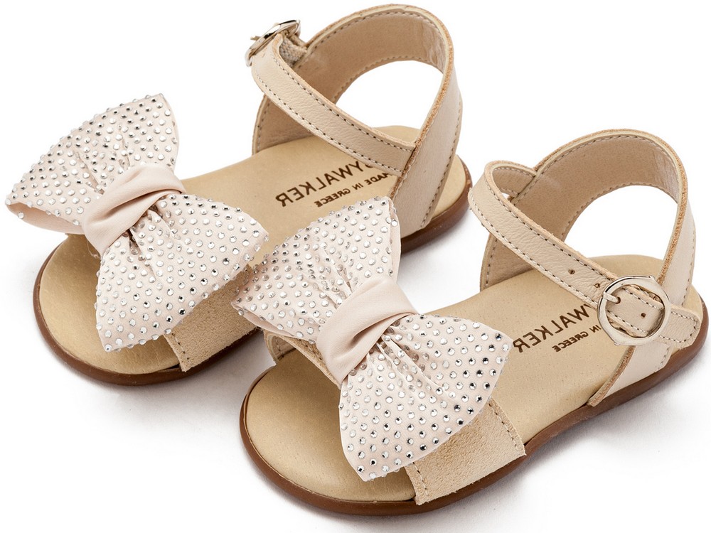 Δερμάτινο Πέδιλο Διακοσμημένο με Μεγάλο Φιόγκο από Στρας σε Μπεζ Χρώμα