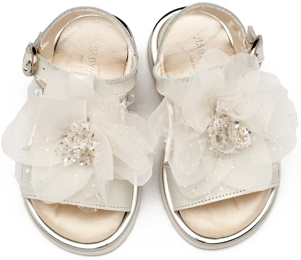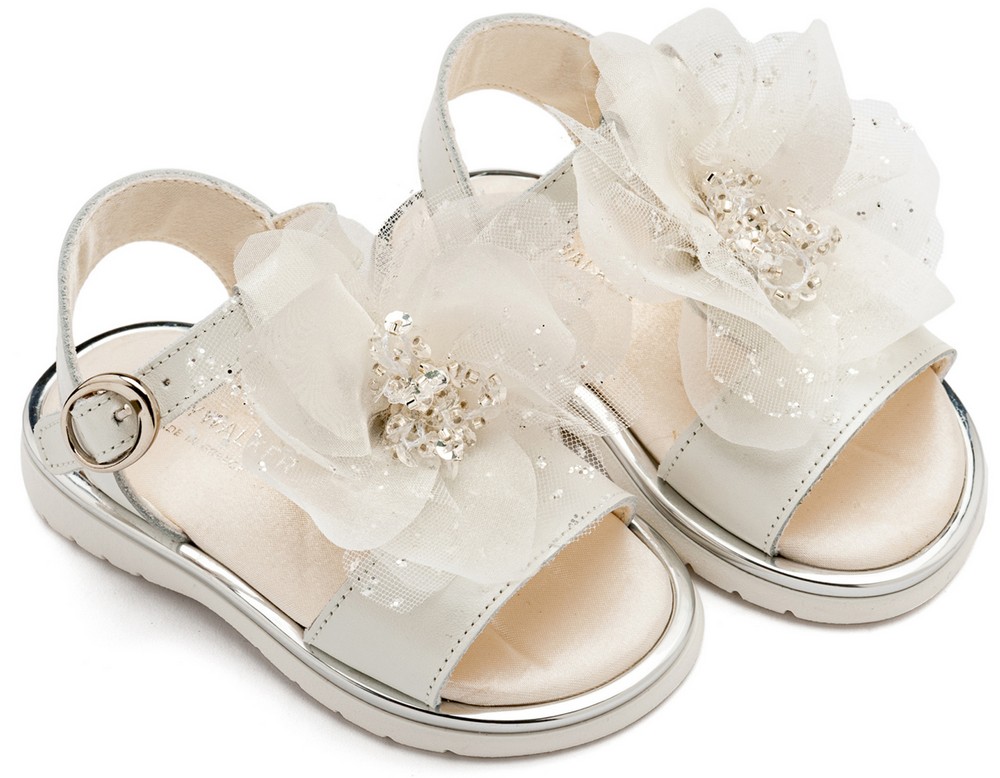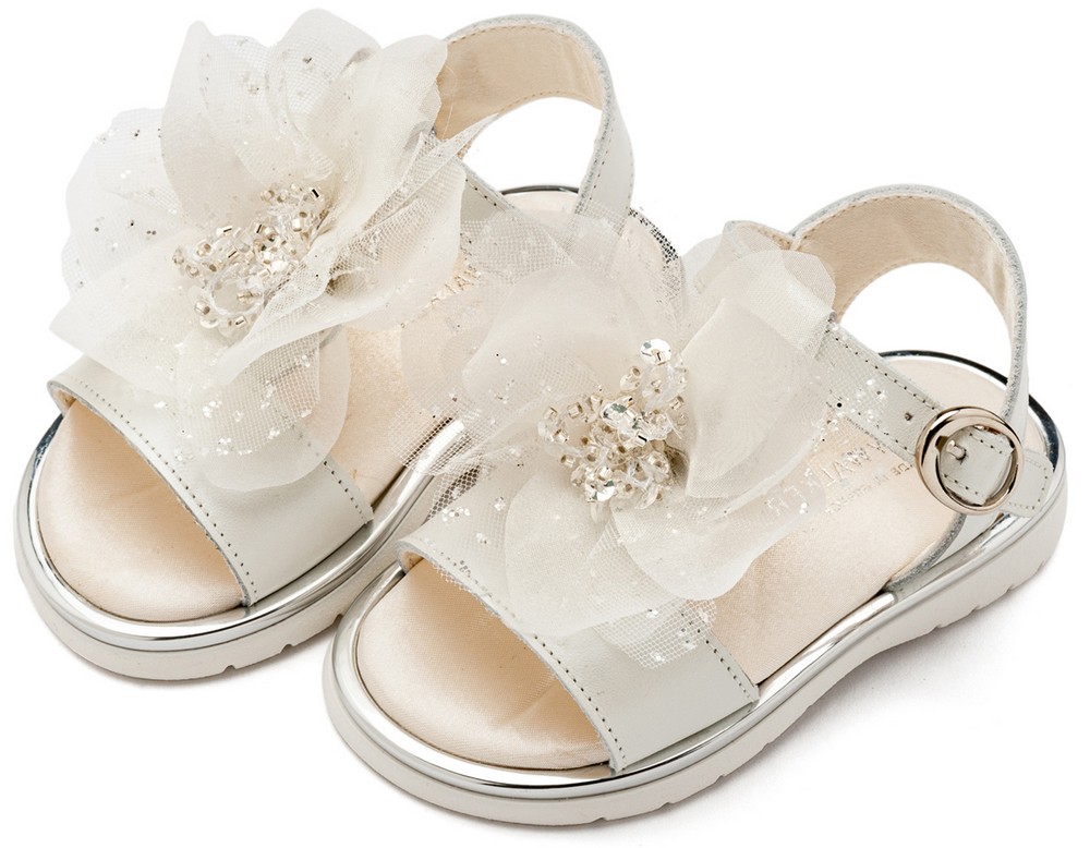 Δερμάτινο Πέδιλο με Χειροποίητο Λουλούδι απο Τούλι σε Εκρού Χρώμα