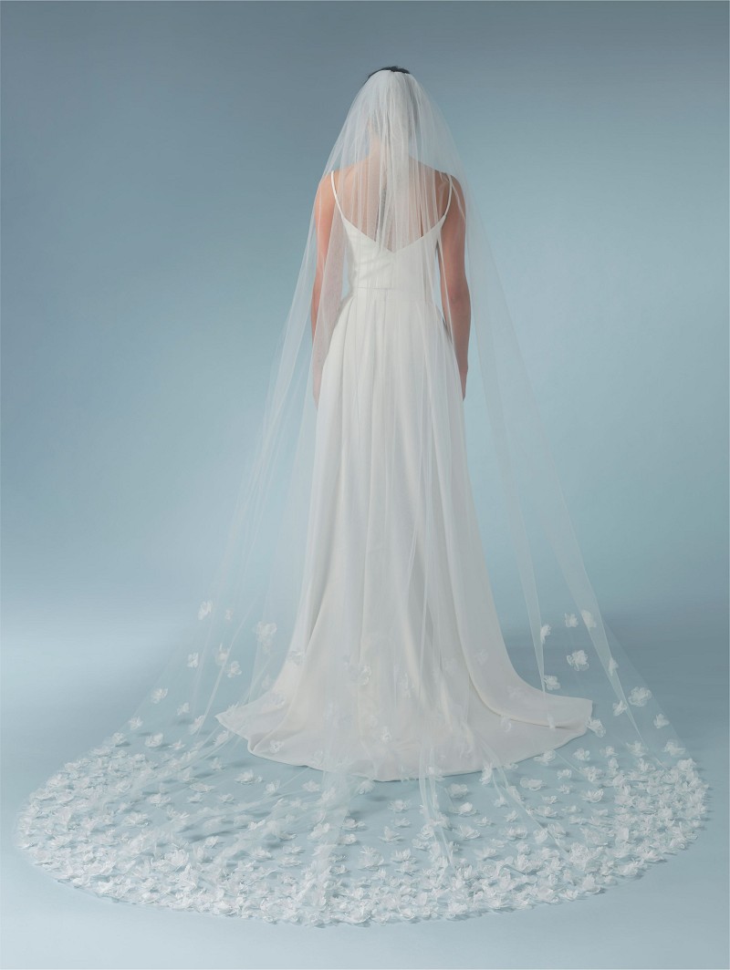 Πέπλο από μεσαίο τούλι μονής στρώσης διακοσμημένο με λουλούδια δαντέλας | Μήκος: 300 cm S464-300–1–MED