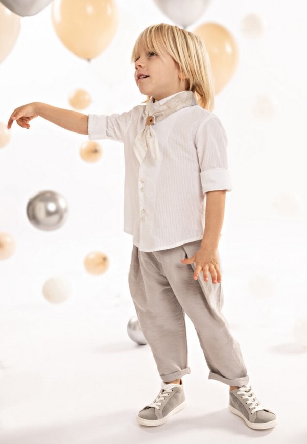 Αυτό το σύνολο αντιπροσωπεύει τα σημερινά trend με τον καλύτερο τρόπο . Η απλότητα του παντελονιού με τις reverse πιέτες σε γκρι modal ύφασμα συνδυάζεται τέλεια με το βαμβακερό πουκάμισο σε off white χρώμα και το χαρακτηριστικό mao γιακά με το λοξό κλείσιμο. Το personalized βουάλ φουλάρι με τα γεωμετρικά λαχούρια σε μπεζ-γκρι αποχρώσεις προσθέτει μια προσεγμένη αισθητική , ενώ η ζώνη από υφαντό ιμάντα και το ψάθινο καπέλο ή τραγιάσκα (ανάλογα με την προτίμηση) ολοκληρώνουν άψογα το σετ.